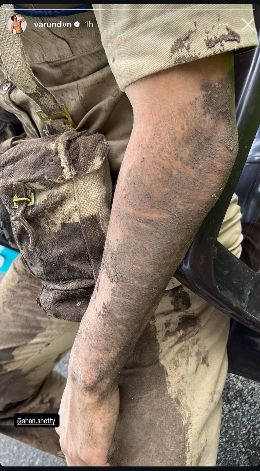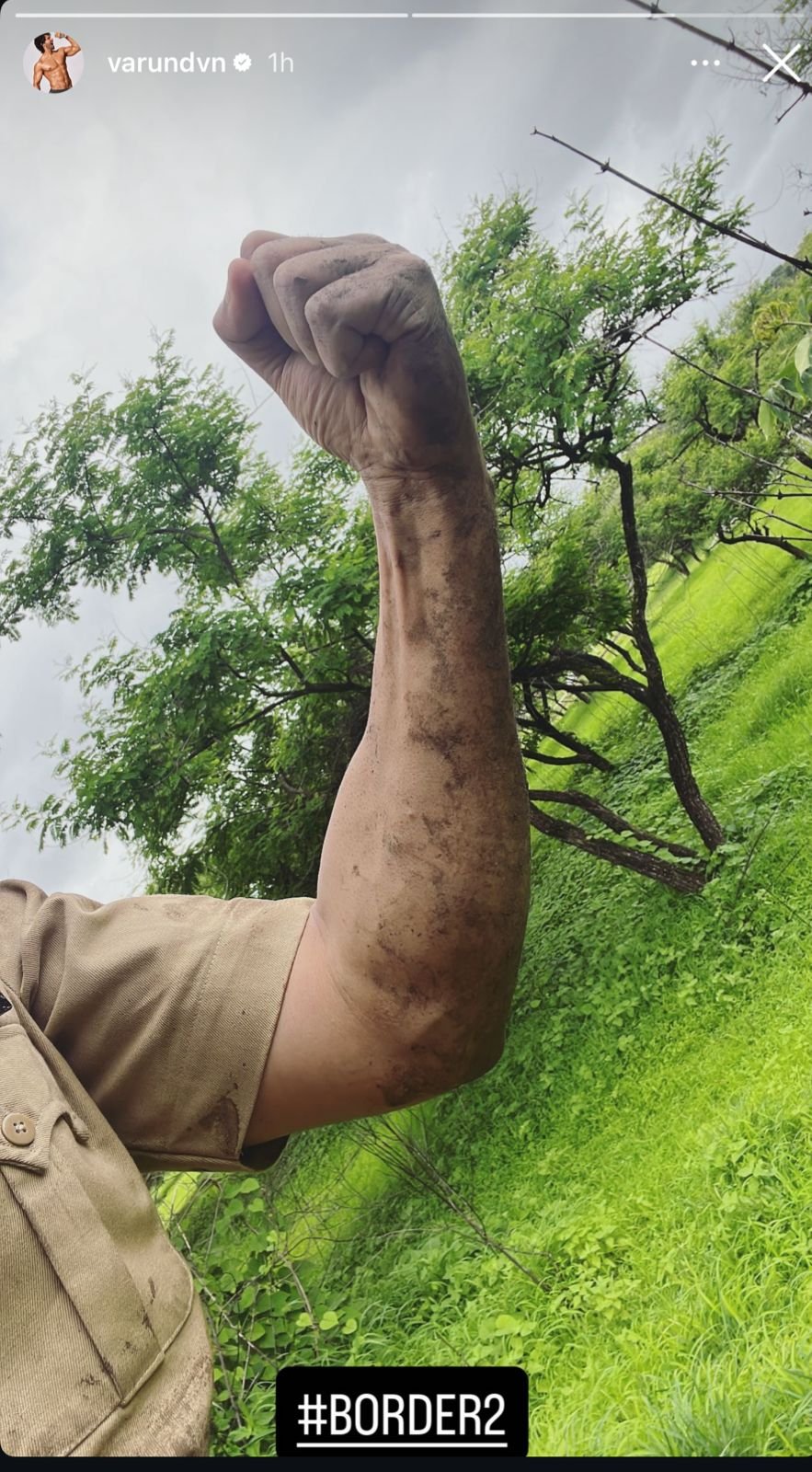 One photo featured co-star Ahaan Shetty’s hand caked in mud, a striking symbol of the raw, real portrayal of soldiers at the border. Varun also shared a similar image of his own hand covered in mud, offering fans a powerful peek into the film’s immersive world of patriotism and sacrifice.